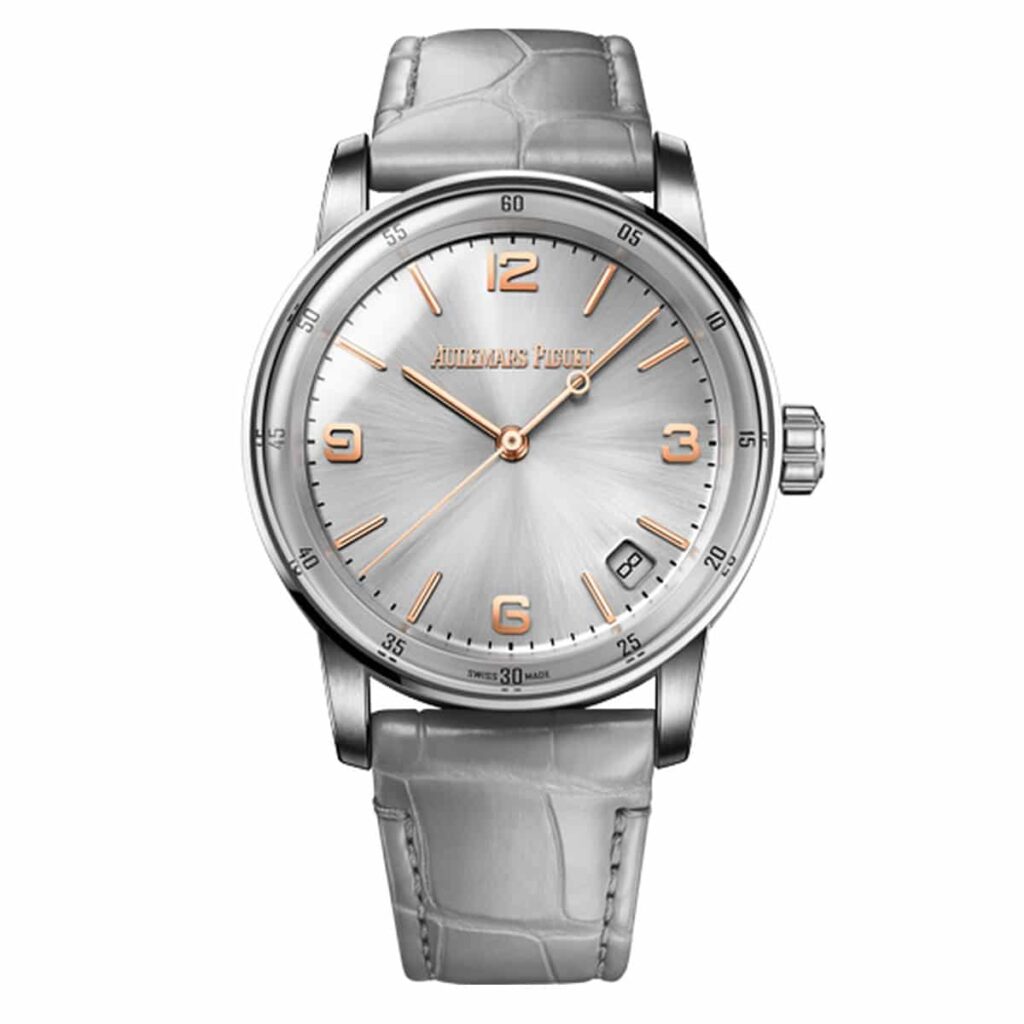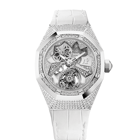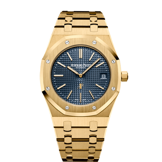 Dial: Blue dial with “Petite Tapisserie” pattern, yellow gold applied hour-markers and Royal Oak hands with luminescent coating.