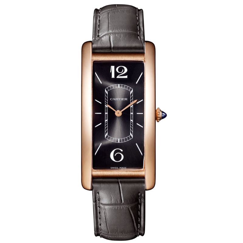 Hand-stitched “large square scale” brown alligator strap with 18-carat pink gold pin buckle. Additional brown alligator strap.