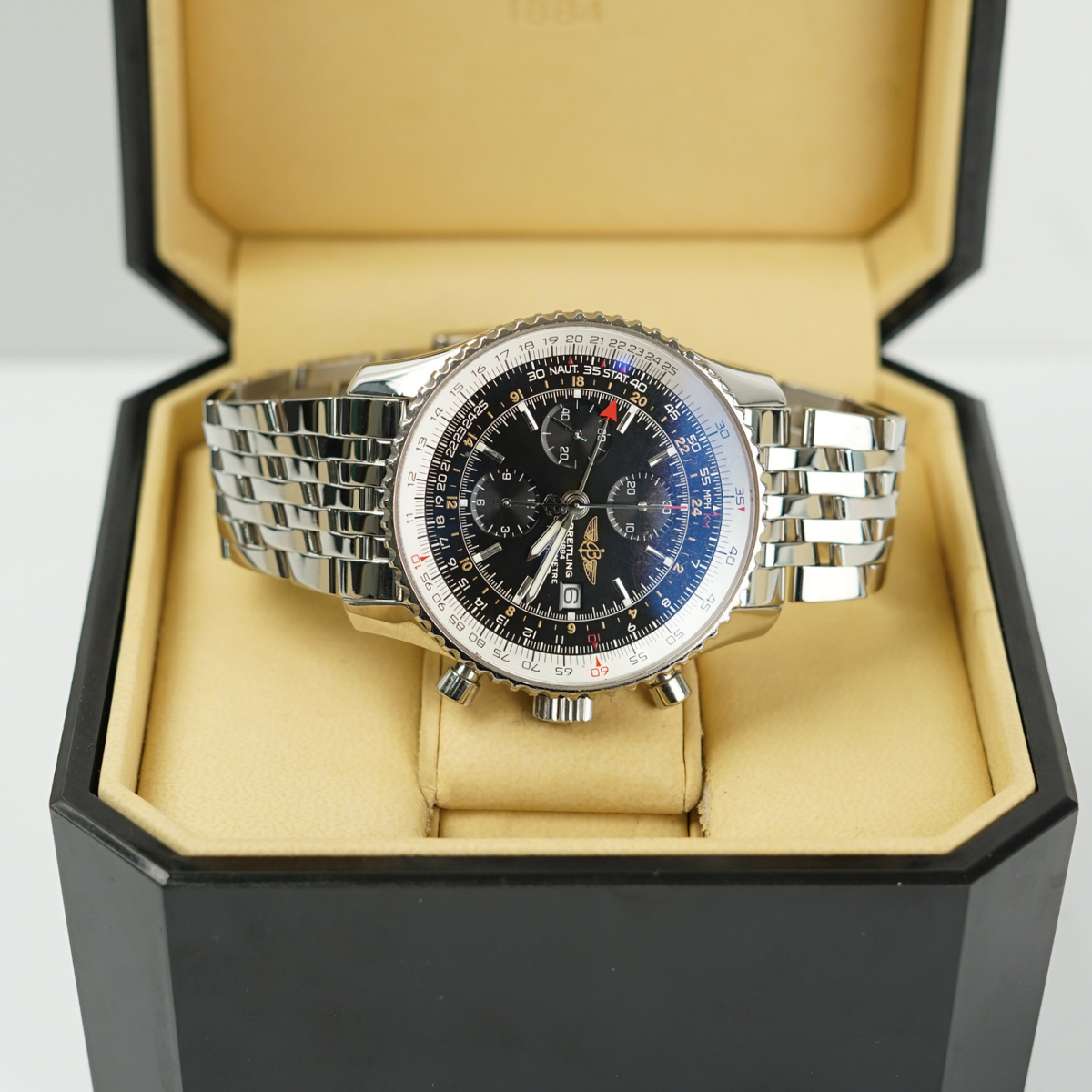 Breitling A24322 Navitimer Black Dial 46mm Stainless Steel Bracelet Watch, Complete Set (Breitling Box and Breitling Papers 2005)