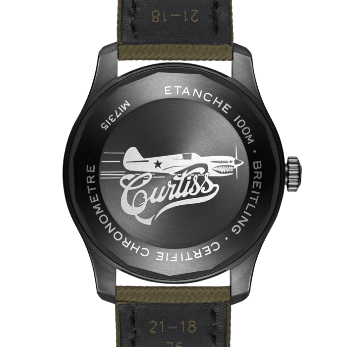 Breitling M173152A1L1X1 Aviator 8 Automatic 41 Black Steel Curtiss Warhawk DLC-Coated Stainless Steel Military Green Dial