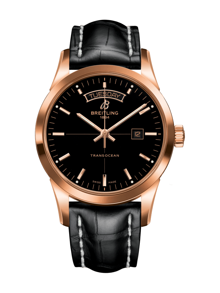 Breitling R45310121B1P1 Transocean Day & Date 43mm 18k Red Gold Black Dial