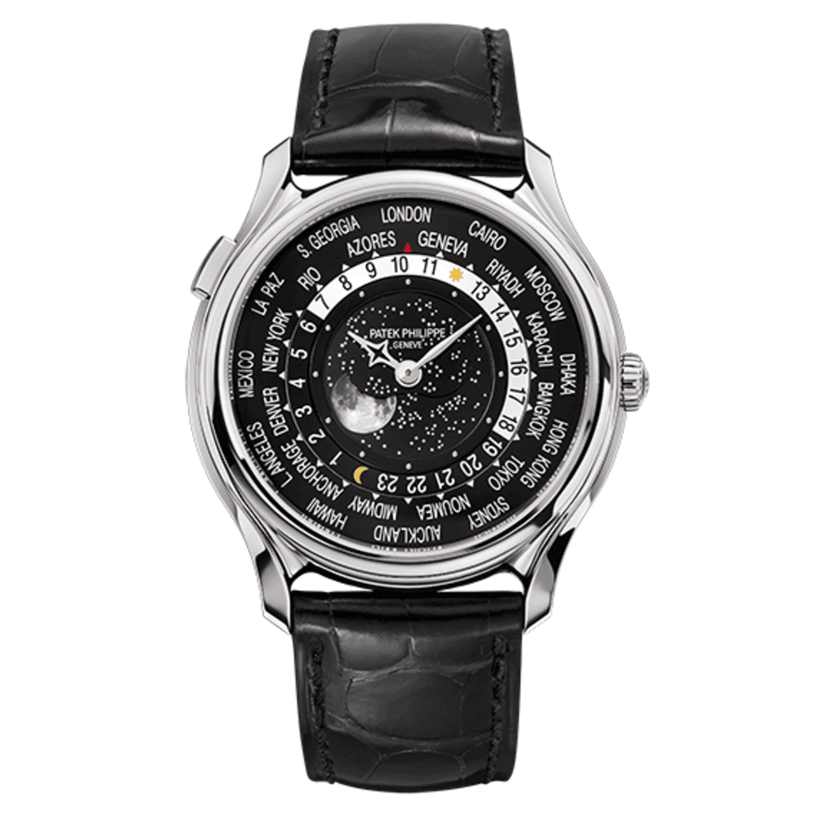Patek Philippe World Time 5575G White Gold Black Dial Leather Watch