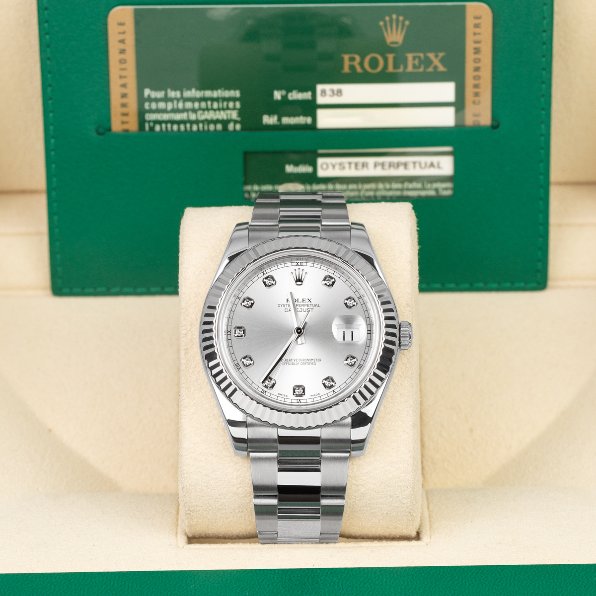 Rolex 116334 Datejust ll 41 mm Steel Silver Diamond Dial