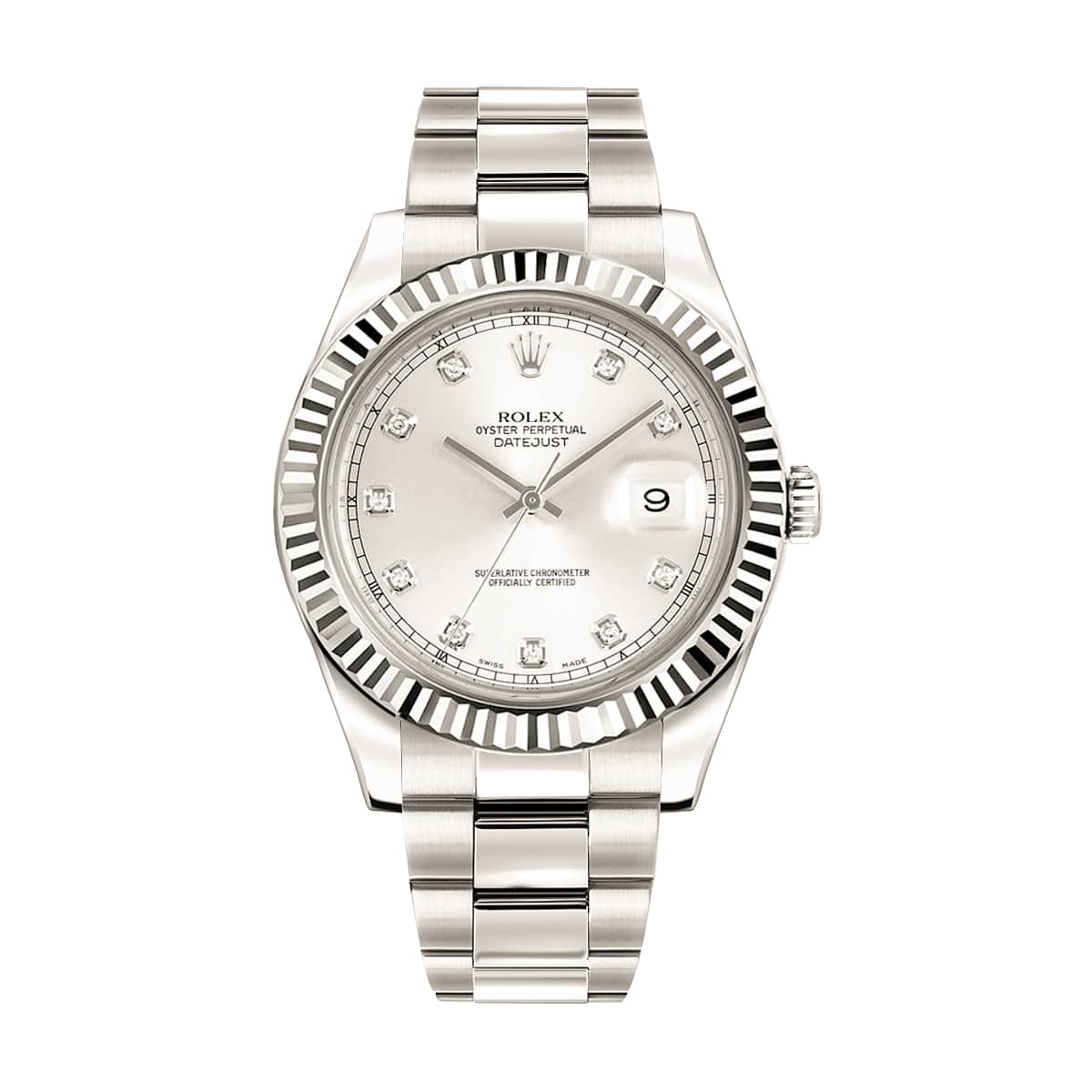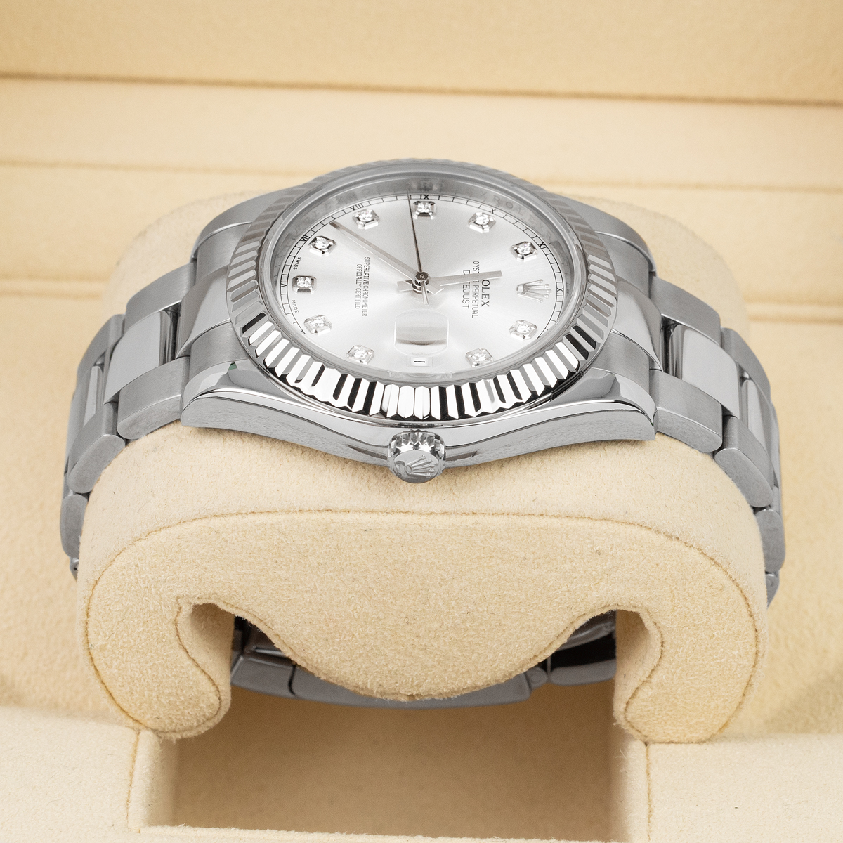 Rolex 116334 Datejust ll 41 mm Silver Diamond Dial Watch