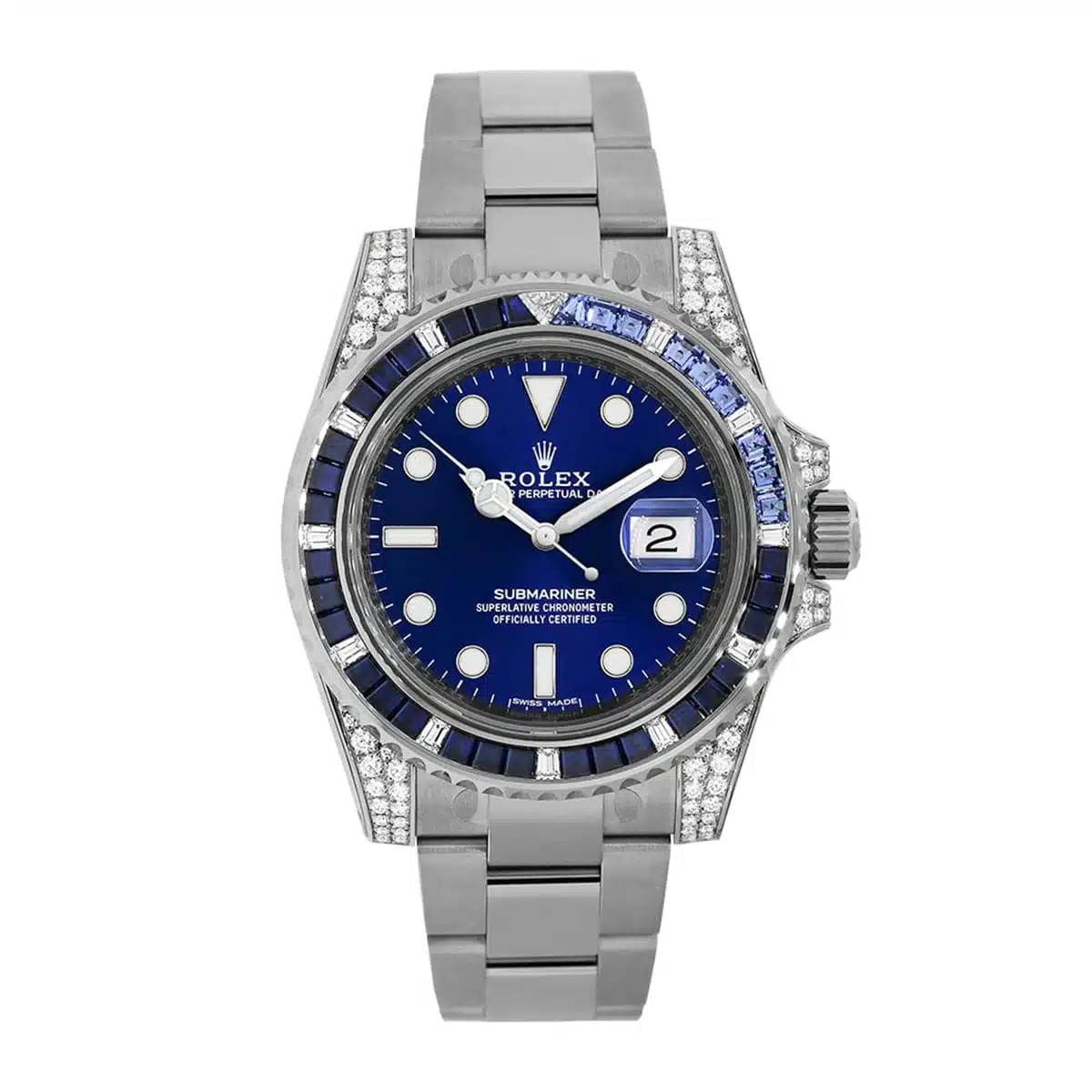 Rolex Submariner Date (ref. 116659SABR) Blue Sapphire and Diamond Bezel Blue Dial watch features selfwinding movement; blue dial, blue sapphire and diamond bezel, and white gold oyster bracelet; sapphire crystal, and 40 mm white gold case.