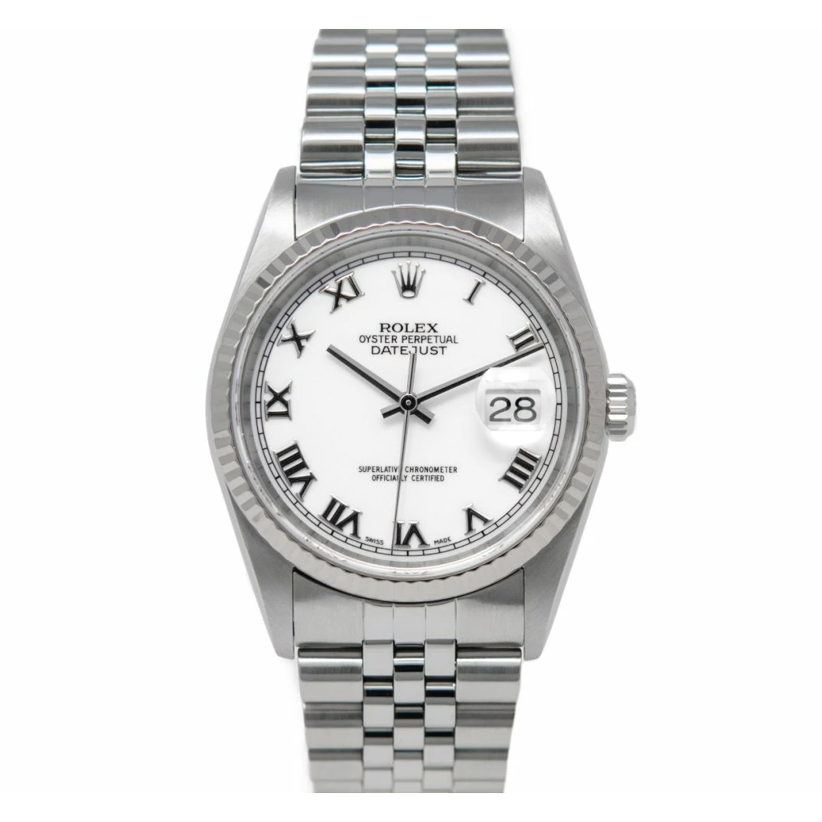 Rolex 16234 Datejust White Roman Dial Stainless Steel Jubilee Bracelet Men’s Watch