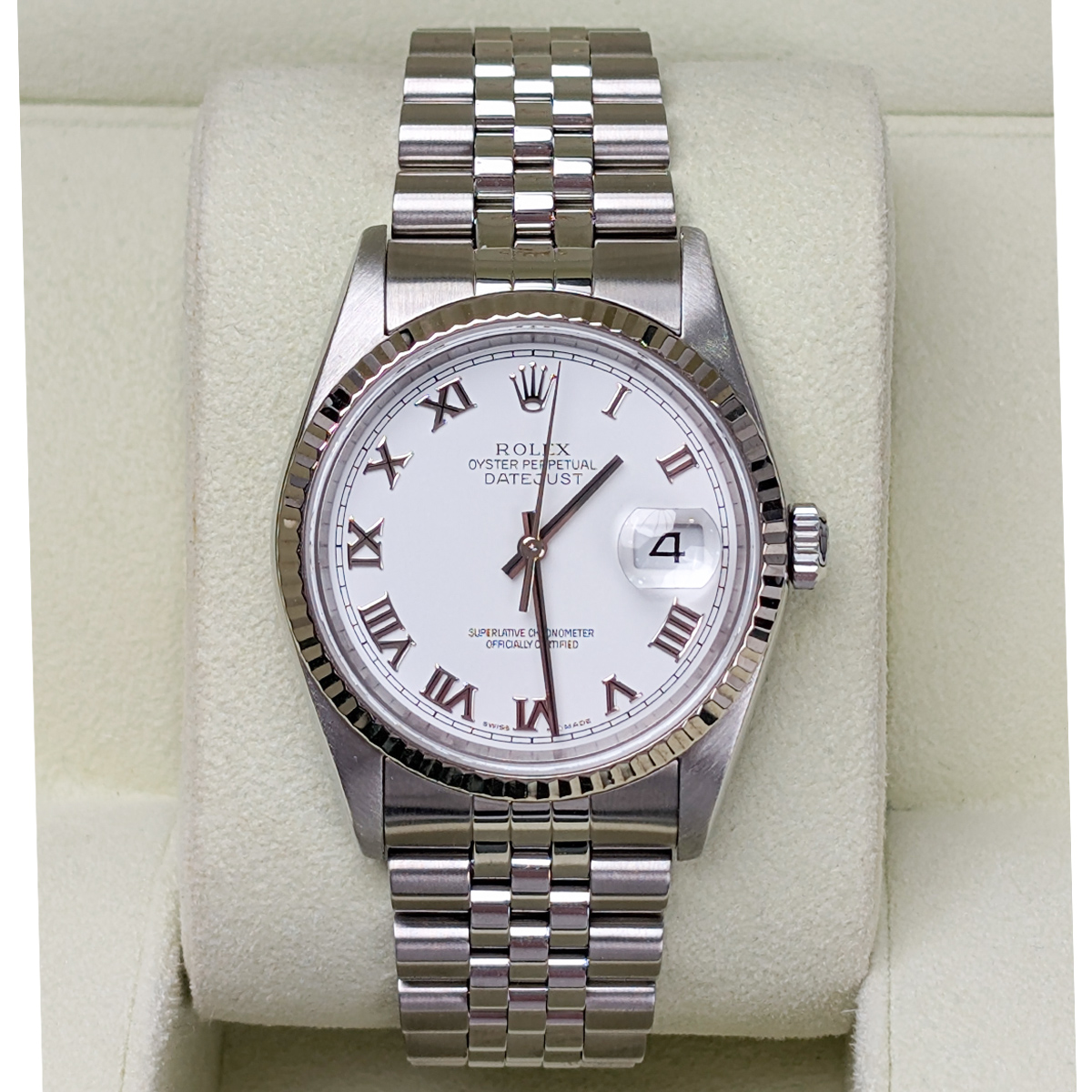 Rolex 16234 Datejust White Roman Dial Stainless Steel Jubilee Bracelet
