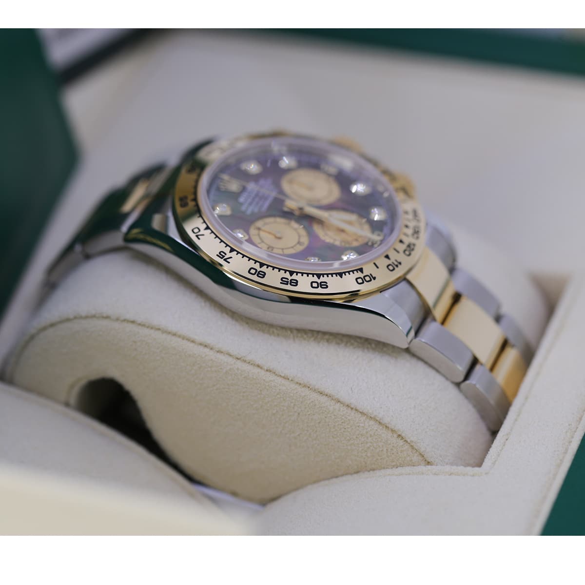 Rolex Cosmograph Daytona 116503 Black MOP Diamond Oyster Steel and Gold Mens Watch