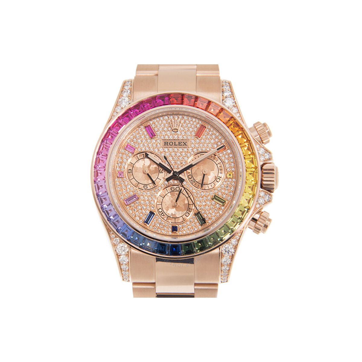Rolex Cosmograph Daytona 116595 Diamond Dial Everose Gold Rainbow Sapphire Watch