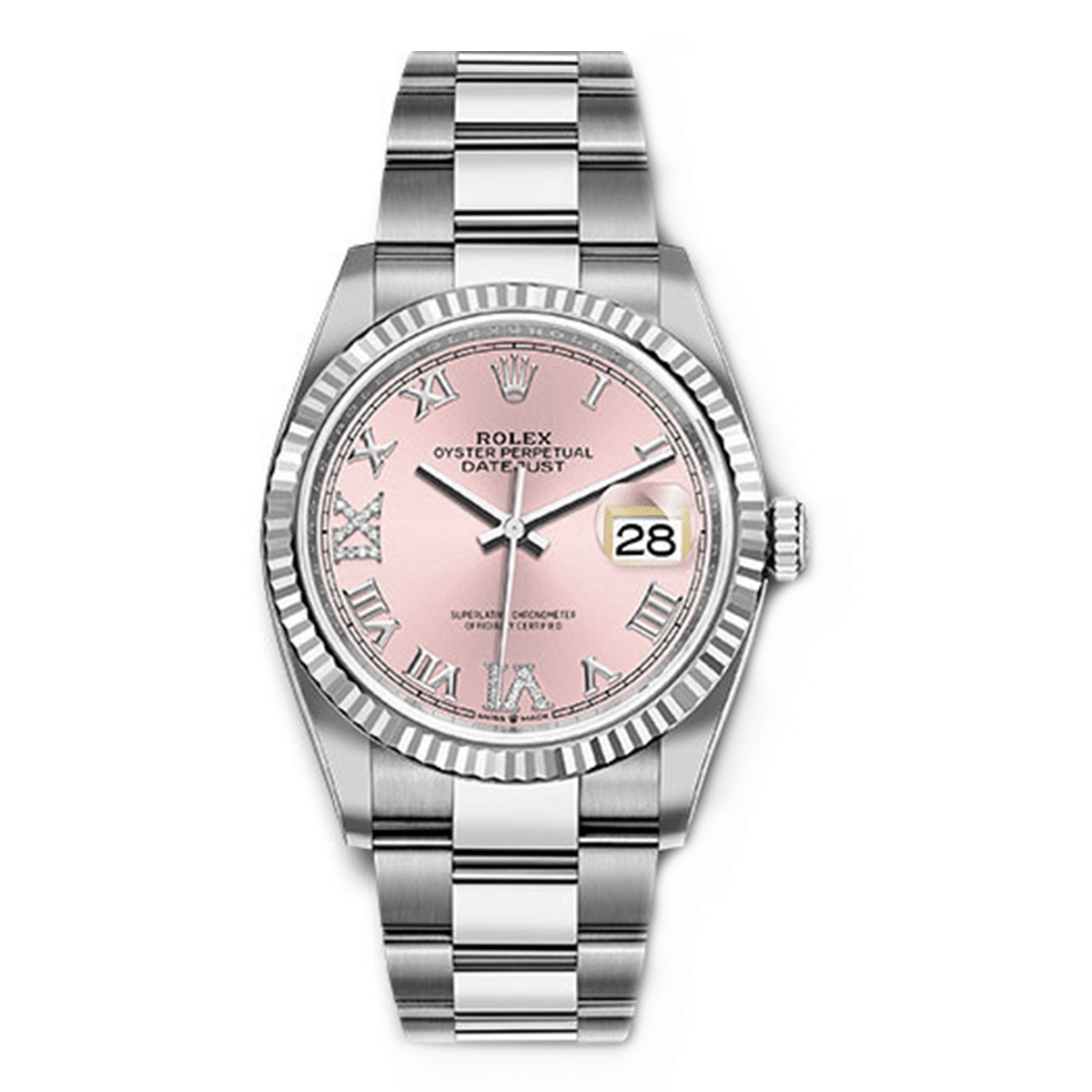 Rolex Datejust 126234-0032 Pink Roman Dial 36mm Oyster Stainless Steel Mens Watch