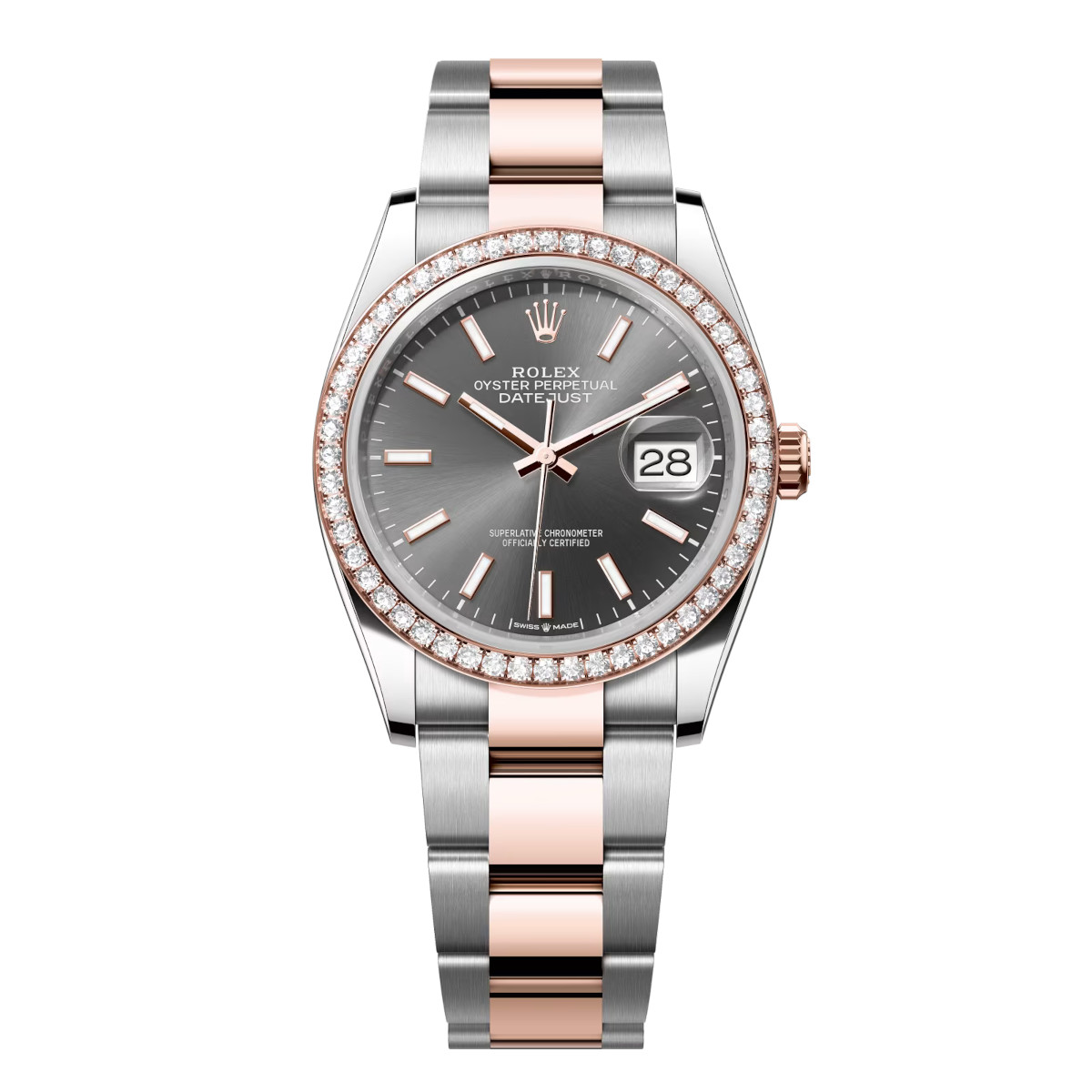 Rolex Datejust 126281RBR-0002 Slate 36mm Dial Diamond Set Bezel Oyster Bracelet Watch