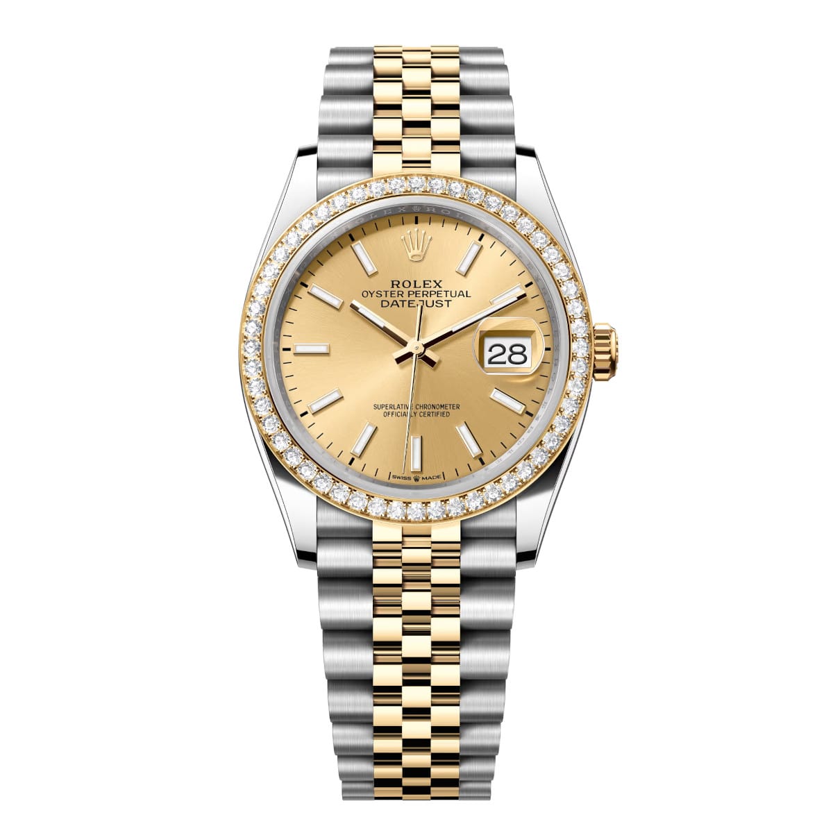Rolex Datejust 126283RBR-0001 Champagne 36mm Dial Diamond-Set Bezel Jubilee Bracelet Watch