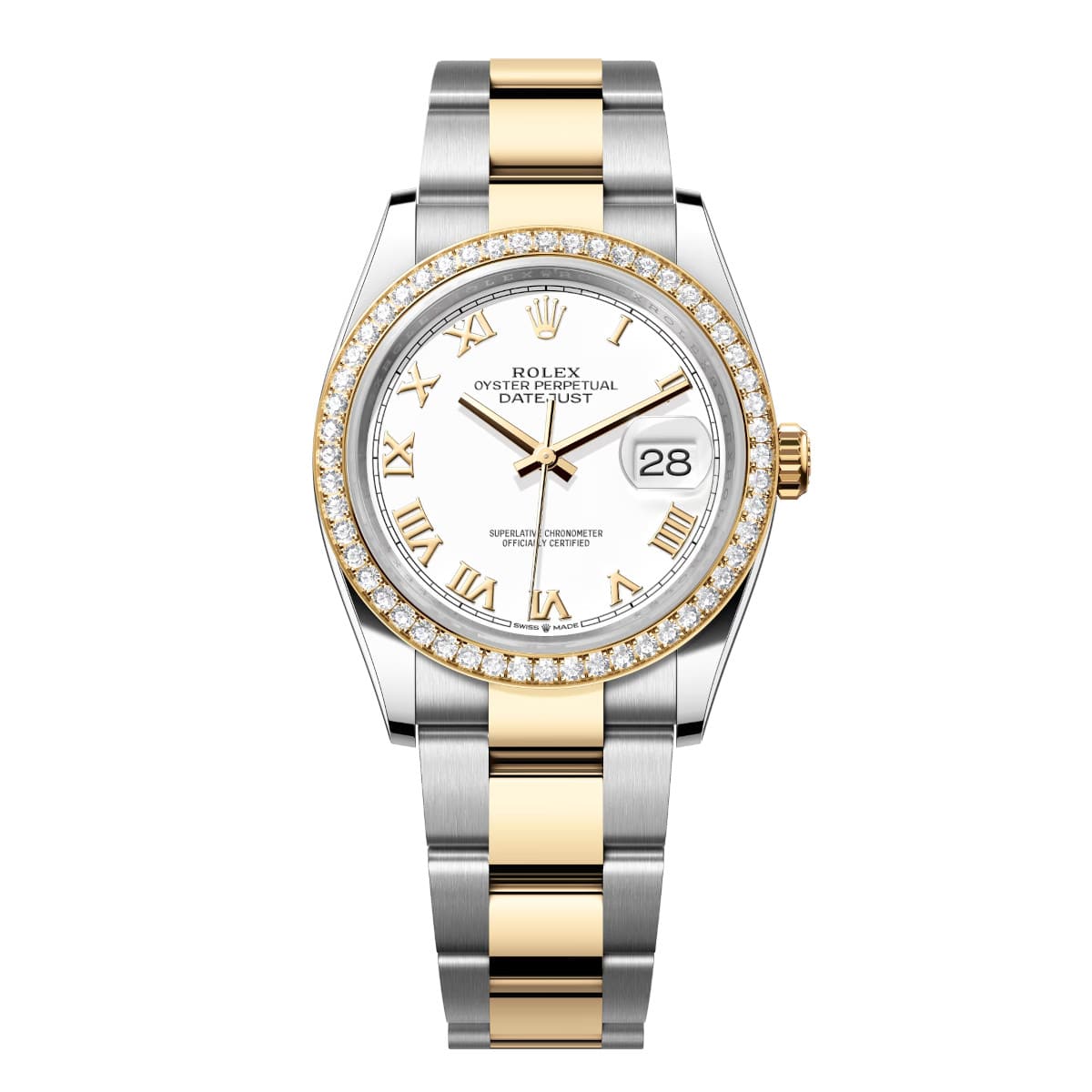 Rolex Datejust 126283RBR-0016 White Roman Numeral 36mm Dial Diamond-Set Bezel Oyster Bracelet Watch