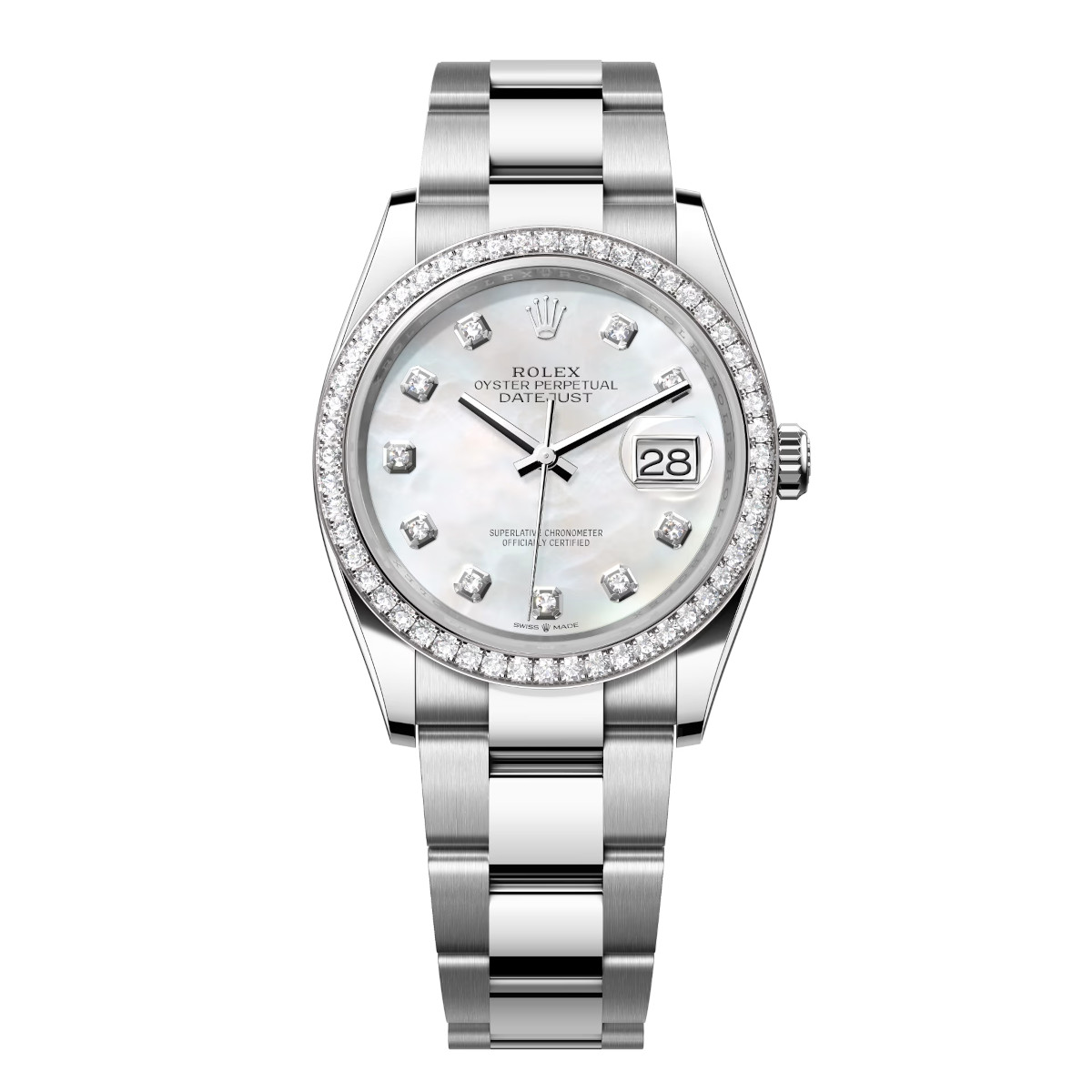 Rolex Datejust 126284RBR-0012 Mother-of-Pearl Set with Diamonds Dial 36mm Diamond Set Bezel Oyster Bracelet Watch