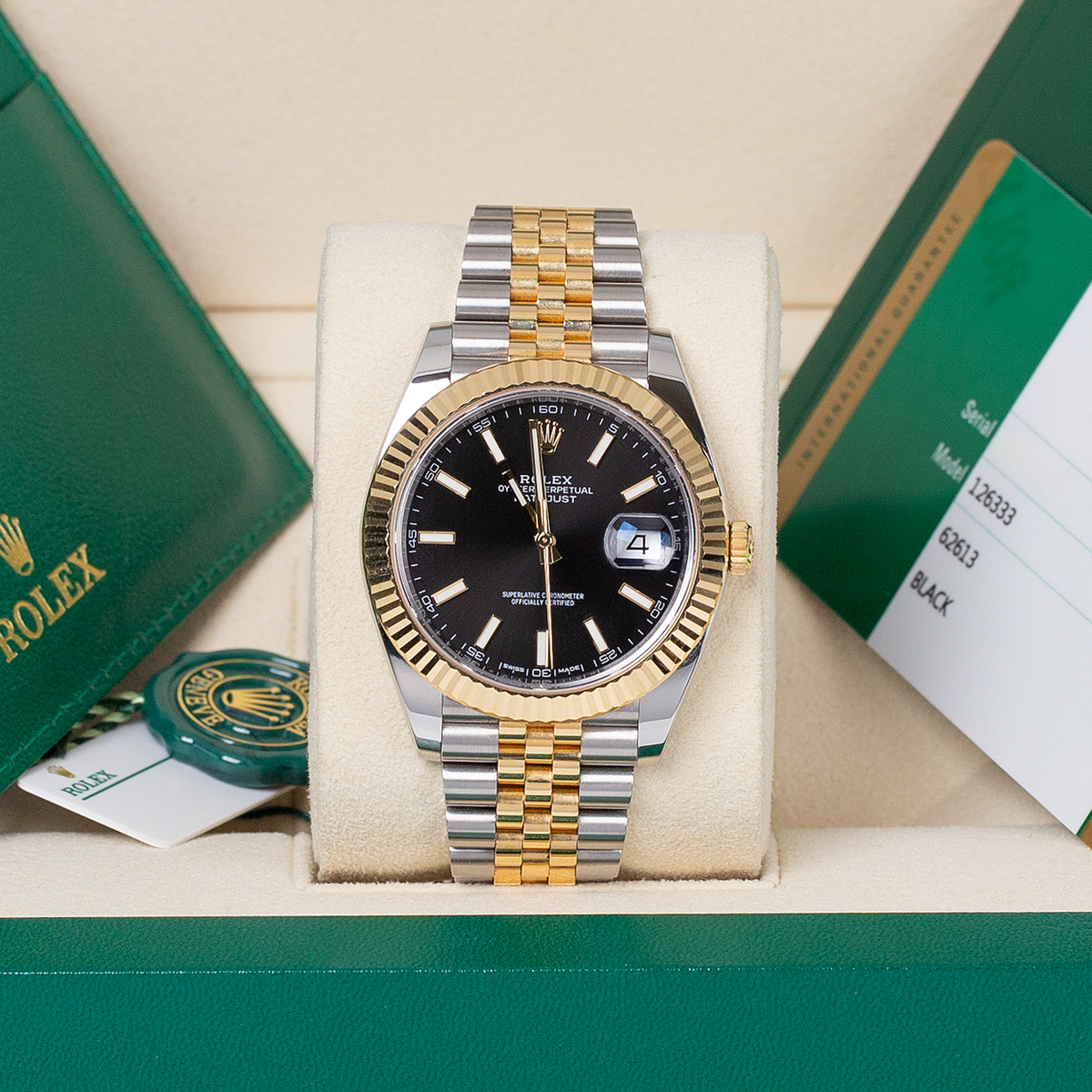 Rolex Datejust 126333-0014 Black Index Jubilee 41mm Steel and Yellow Gold Mens WatchMint Condition