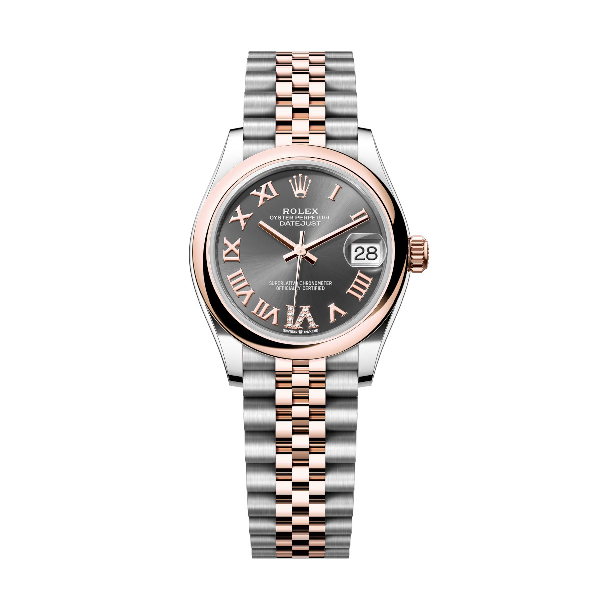 Rolex Datejust 278241-0030 Slate Roman Numeral Set with Diamonds 31mm Dial Domed Bezel Jubilee Bracelet Two-Toned Everose Gold Watch