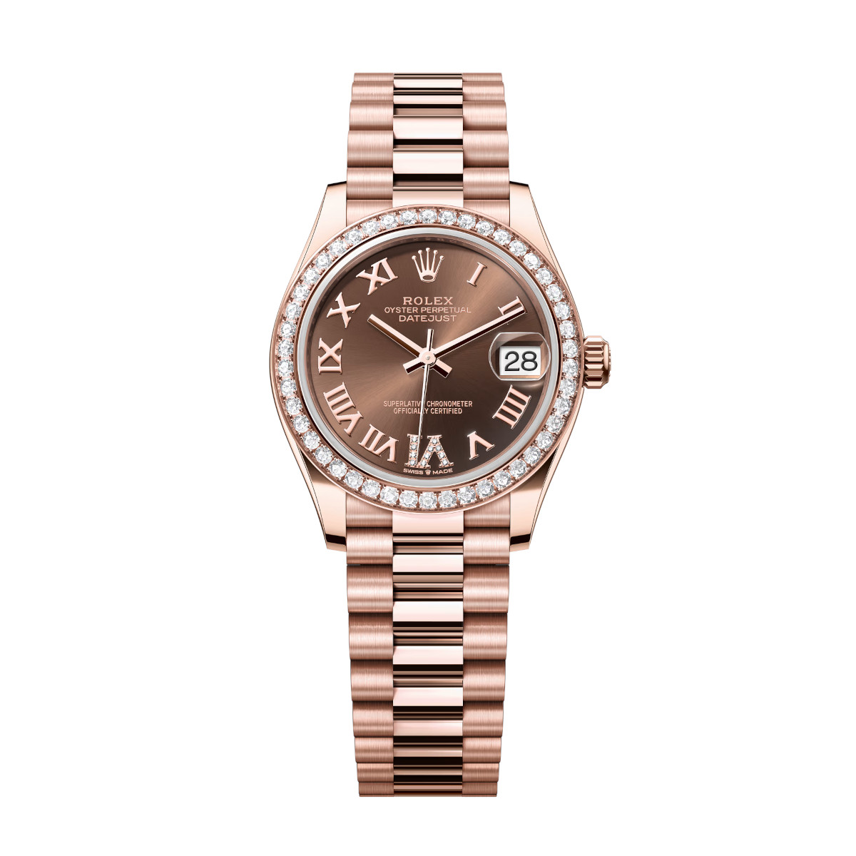 Rolex Datejust 278285RBR-0016 Chocolate Roman Numeral Set with Diamonds 31mm Dial Diamond Set Bezel President Bracelet Watch