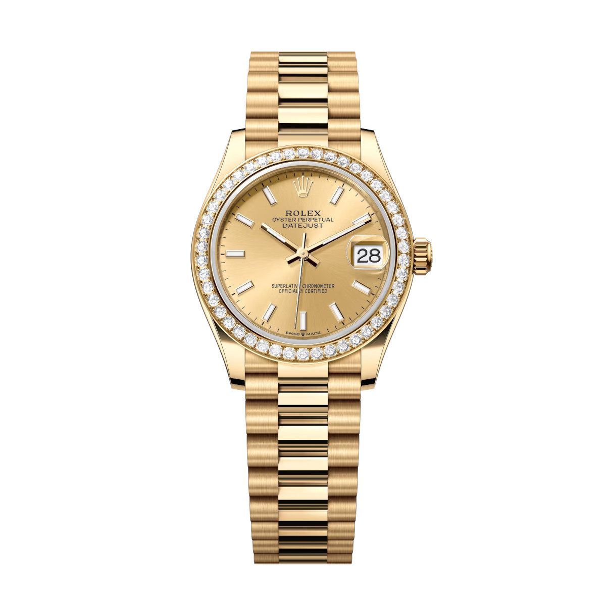 Rolex Datejust 278288RBR-0022 Champagne Index 31mm Dial Diamond-Set Bezel and President Bracelet Watch