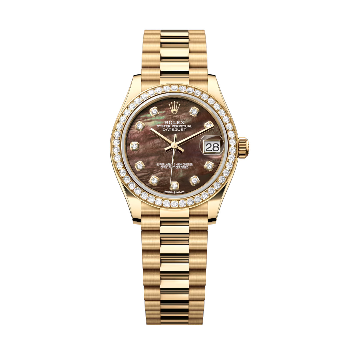 Rolex Datejust 278288RBR-0032 Black Mother-of-Pearl Set with Diamonds 31mm Dial Diamond-Set Bezel and President Bracelet Watch