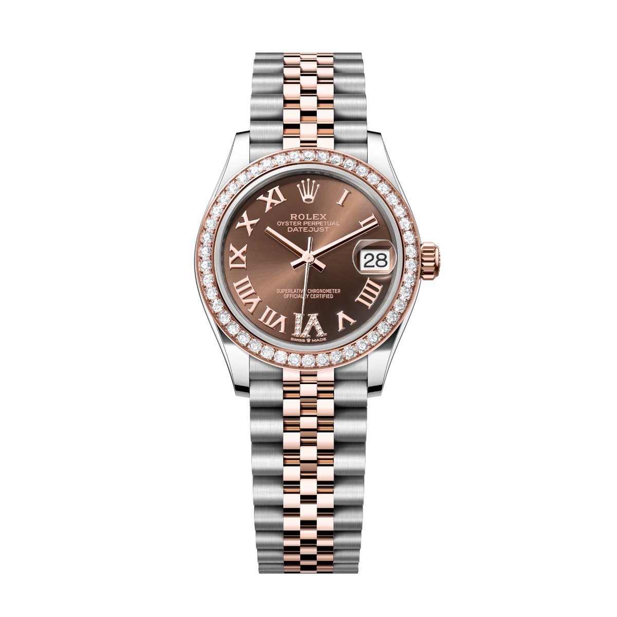 Rolex Datejust 278381RBR-0006 Chocolate Roman Numeral Set with Diamonds 31mm Dial Diamond-Set Bezel Jubilee Bracelet Watch