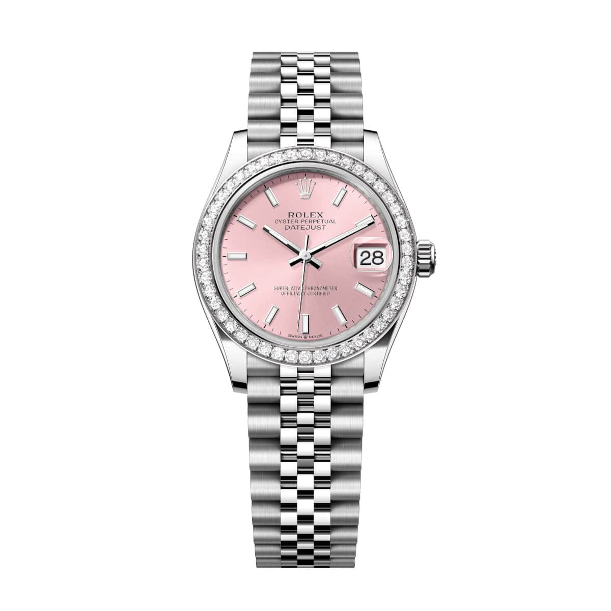Rolex Datejust 278384RBR-0018 Pink 31mm Dial Diamond Set Bezel Jubilee Bracelet White Rolesor Watch