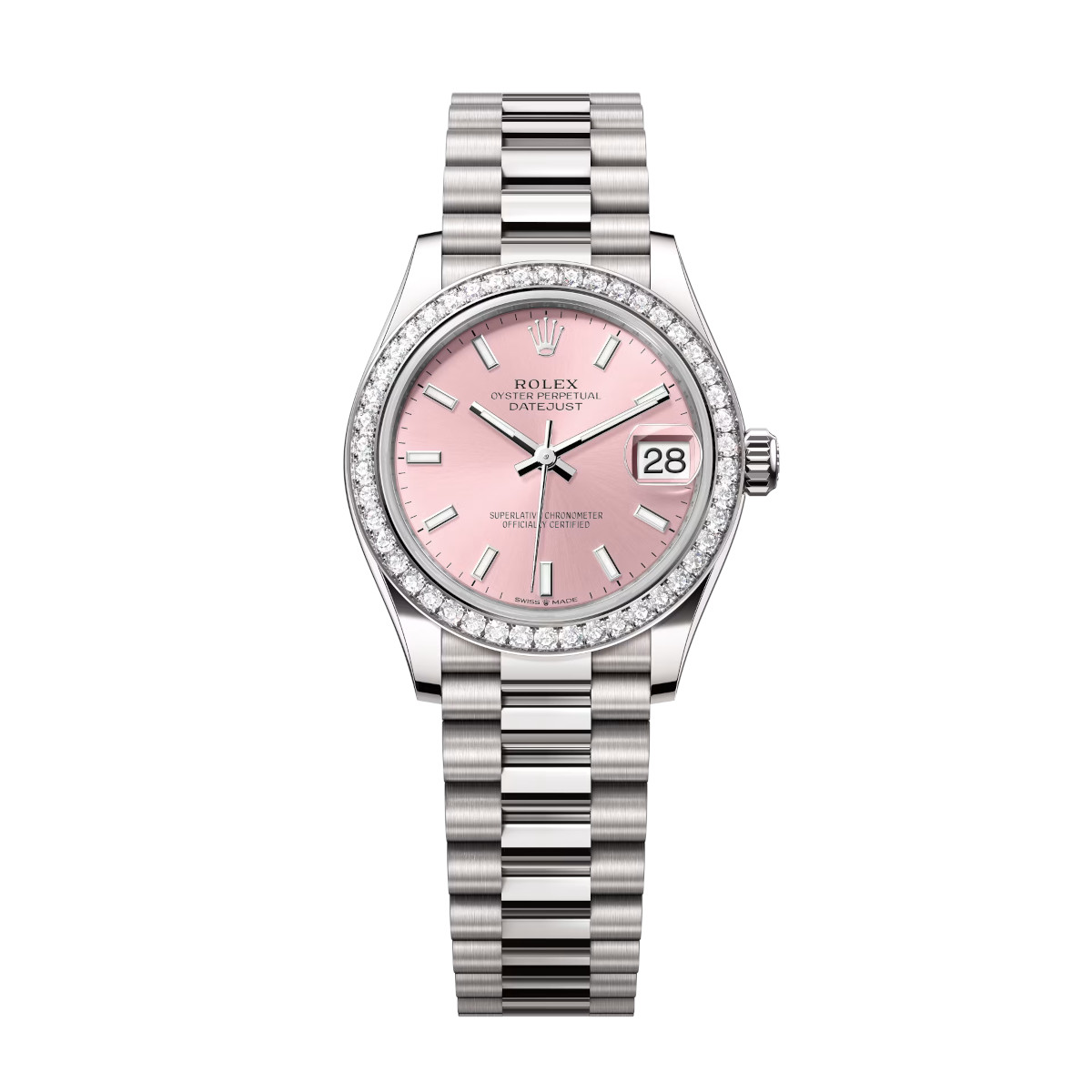 Rolex Datejust 278289RBR-0013 Pink 31mm Dial Set with Diamonds Bezel 18 kt White Gold President Bracelet Watch