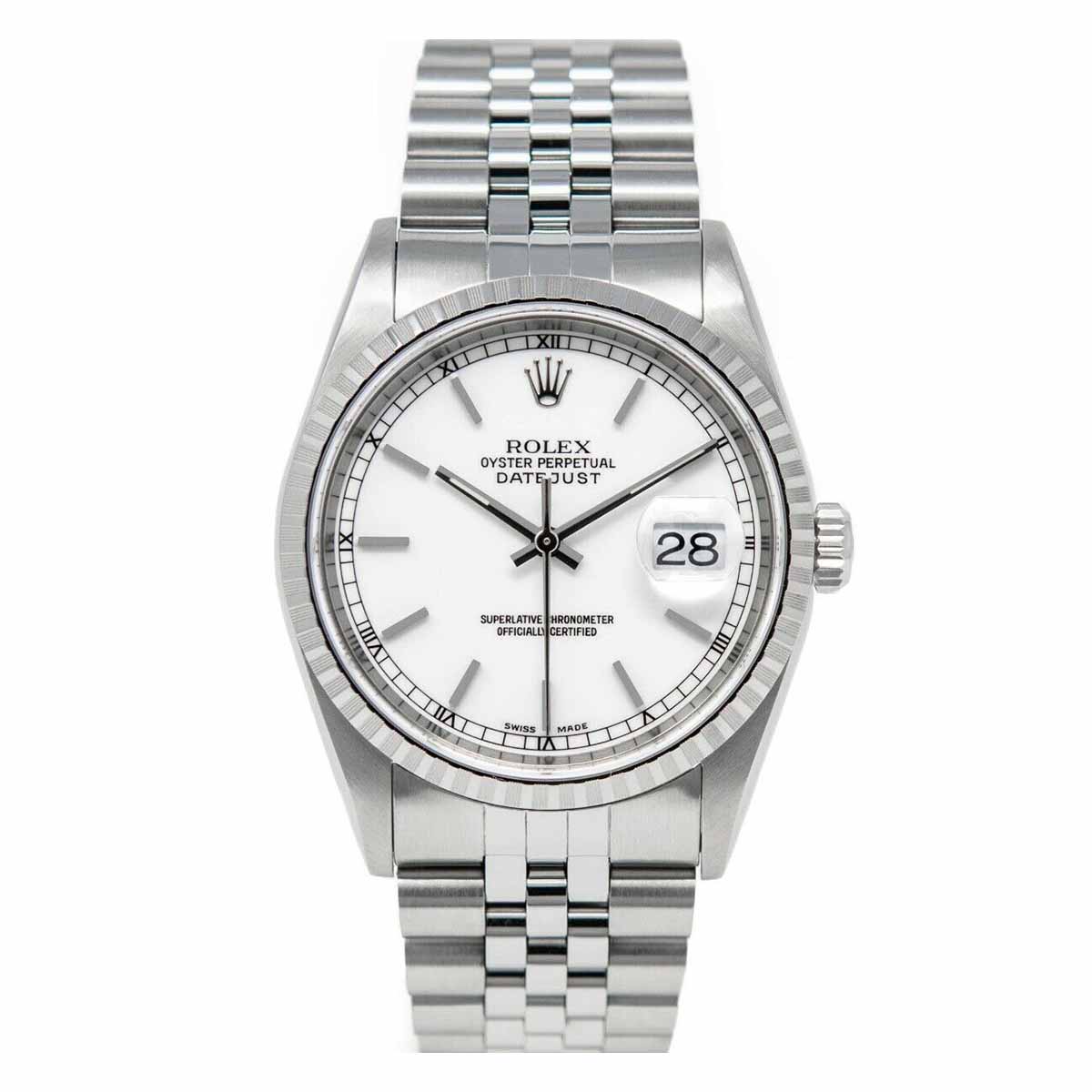 Rolex Datejust 36mm 16220 White Stick Dial Jubilee Bracelet Watch, 2-year warranty with Luxury Watches USA, Rolex Box