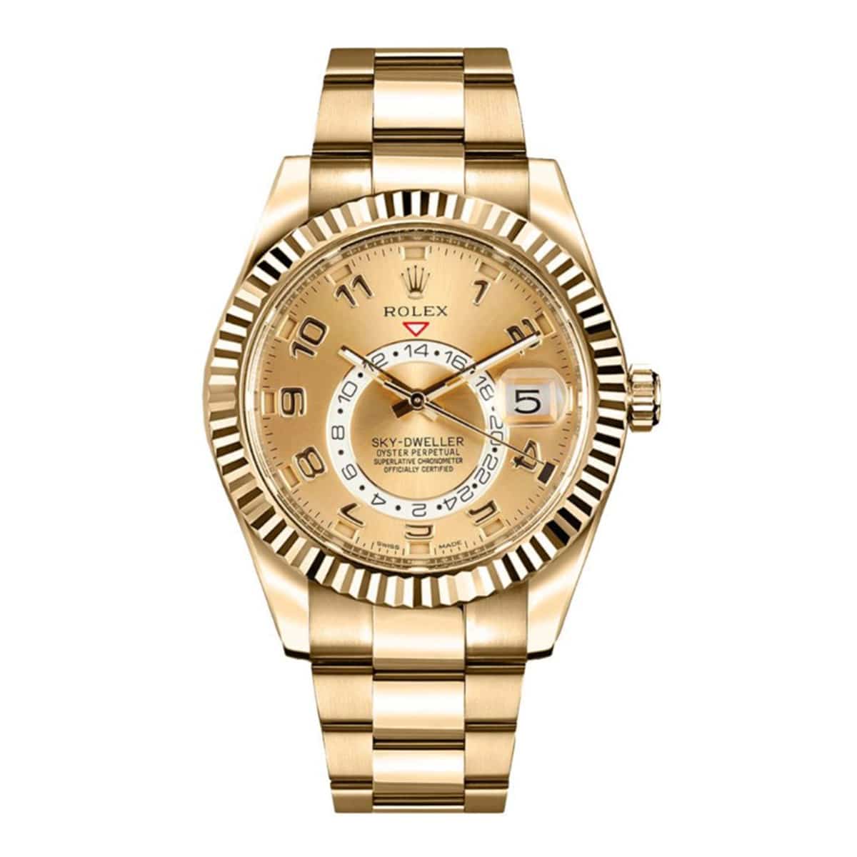Rolex Sky-Dweller 326938-0002 42mm 18k Yellow Gold Champagne Dial Watch